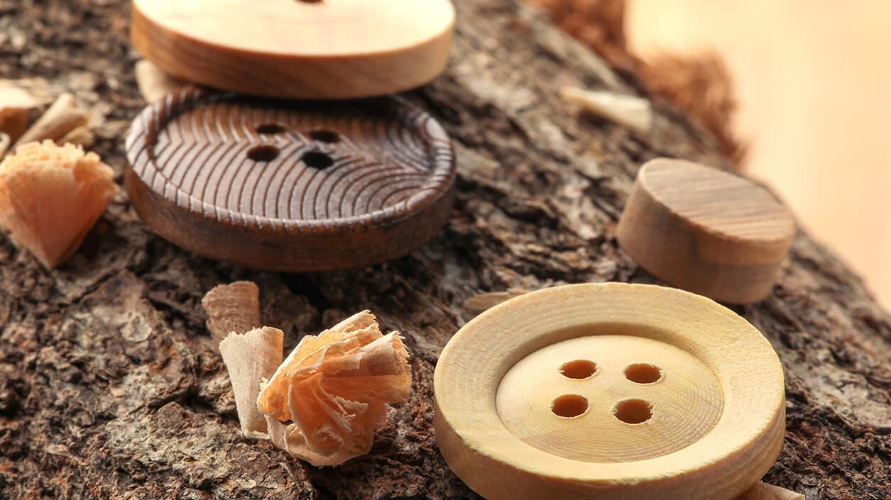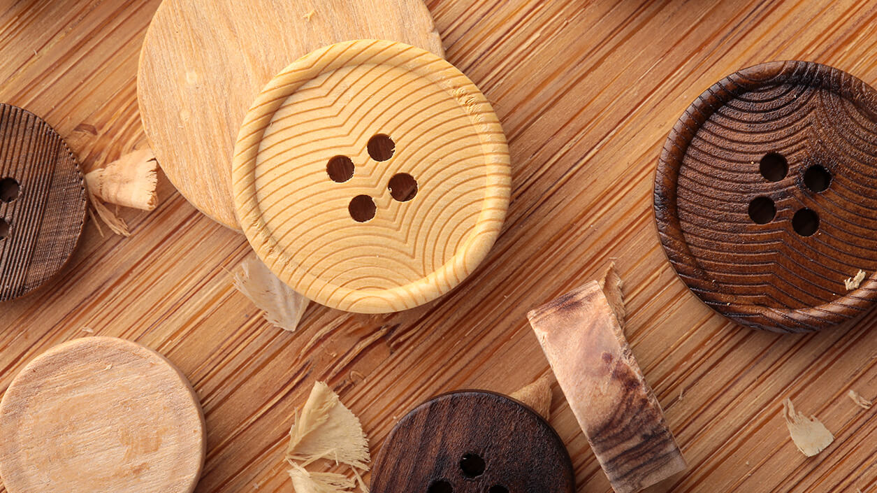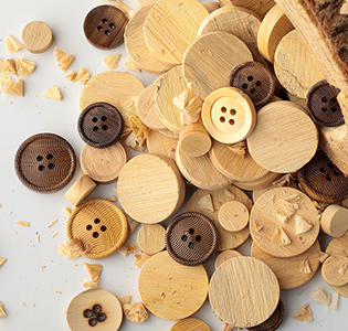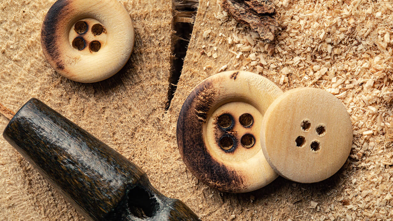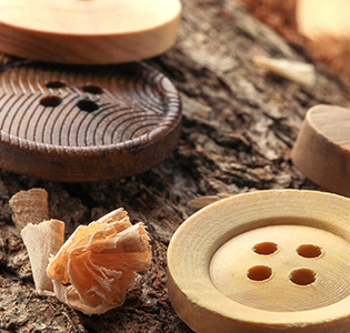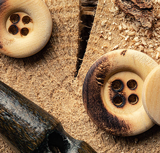 Şimşir ve zeytin ağacından üretilen ahşap düğmeler, vahşi doğayı yansıtırlar. Toplumsal sorumluluk sahibi küresel markalar arasında büyüyen bir trend olan ahşap düğmeler, ekolojik moda açısından iyi birer seçenektir.